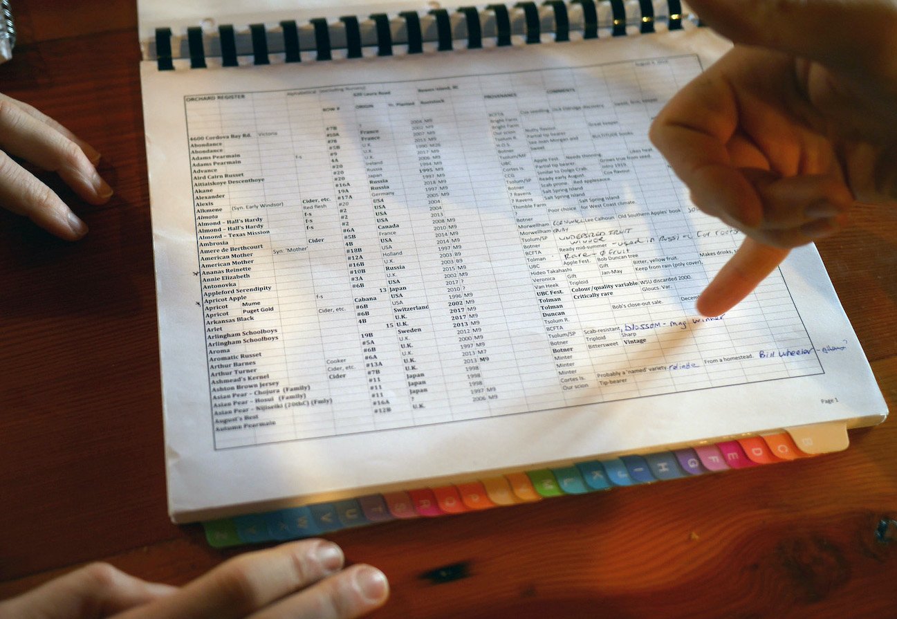 Part of Christine's work with John Riley was cataloguing each of the near-1000 varieties and sources of each original piece of scion wood.