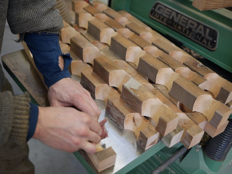 We recently had a custom riddling rack made for our cellar by good friend and fabricator, George. We were able to source beautiful, dense alder wood grown and milled on our island to make it, and through online research and consulting with faraway cidermakers who have made DIY racks, George hit upon a perfect design for our narrow cellar space.
